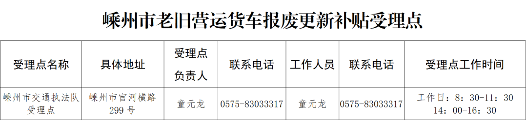 4.嵊州市老舊營(yíng)運(yùn)貨車(chē)報(bào)廢更新補(bǔ)貼受理點(diǎn)