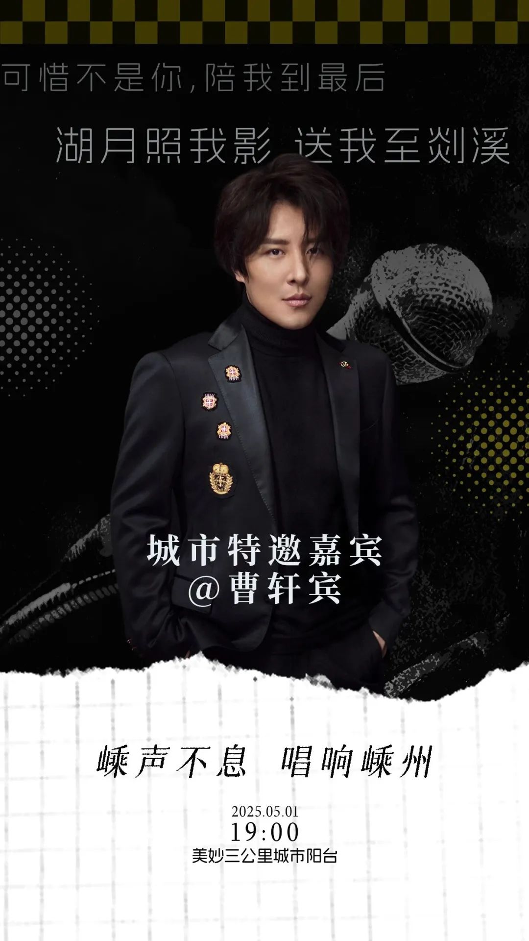 暮春五月,剡溪水暖。這個(gè)五一,曹軒賓將空降嵊州“嵊聲不息” 音樂(lè)會(huì)現(xiàn)場(chǎng)。當(dāng)熟悉的旋律與剡溪的粼粼波光交織,當(dāng)標(biāo)志性的嗓音撞上越劇故里的千年風(fēng)雅,那些藏在記憶深處的遺憾,或許會(huì)在晚風(fēng)中悄然和解 —— 畢竟,錯(cuò)過(guò)的人終將成為故事,而此刻的相遇,才是命運(yùn)饋贈(zèng)的禮物。