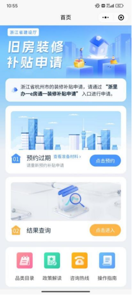 2025年舊房裝修和廚衛(wèi)等局部改造所需物品和材料購(gòu)置補(bǔ)貼官方指定申報(bào)入口為“浙里舊房裝修”微信小程序,線上進(jìn)行申報(bào)。