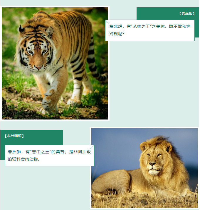 園區(qū)經(jīng)2018年升級改造后于9月22日正式開園,新增來自世界各地的珍稀瀕危野生動物百余種,其中有東北虎、非洲獅、森林狼、澳大利亞袋鼠、斑馬、黑熊、梅花鹿、金剛鸚鵡、鱷魚、北極狐、鴕鳥、耳廓狐、梅花鹿、馬鹿、駱駝、駝鳥、鴯鹋、羊駝、矮馬、白枕鶴、獼猴、孔雀、松鼠、細(xì)尾獴、盤羊、海貍鼠、蟒蛇等等。