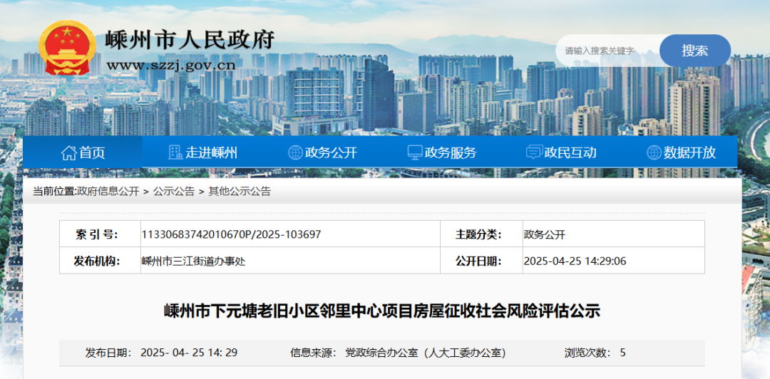為落實城市總體規(guī)劃,政善區(qū)塊交通狀況和人居環(huán)境,完善城市基礎設施配套,提升居民生活質量和水平,需對嵊州市下元塘老舊小區(qū)鄰里中心項目所涉國有土地上房屋(住宅、辦公)實施征收。