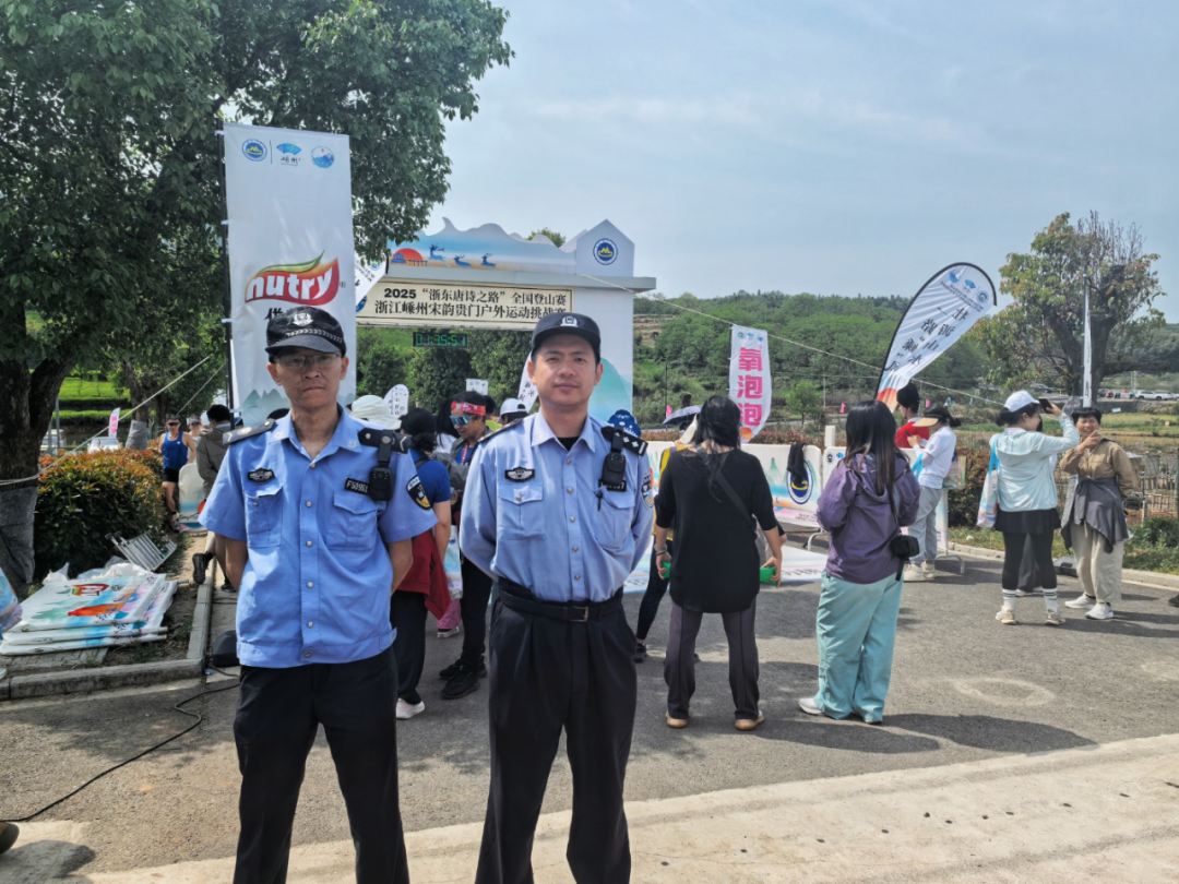 “師傅,安全第一!前面右拐有臨時(shí)停車點(diǎn)?!苯痪箨?duì)民輔警早早來(lái)到嵊州宋韻貴門戶外活動(dòng)挑戰(zhàn)賽現(xiàn)場(chǎng),與貴門派出所一同開(kāi)展安保執(zhí)勤工作。為確保賽事安全有序,嵊州公安提前部署,在賽道沿線設(shè)置多個(gè)執(zhí)勤點(diǎn)位,聯(lián)合社會(huì)安保力量開(kāi)展賽前檢查、安檢指導(dǎo)、交通疏導(dǎo)、秩序維護(hù)及應(yīng)急保障等工作。民輔警們化身“賽道守護(hù)者”,用一聲聲提醒、一次次指引,為參賽選手和觀眾朋友們保駕護(hù)航。