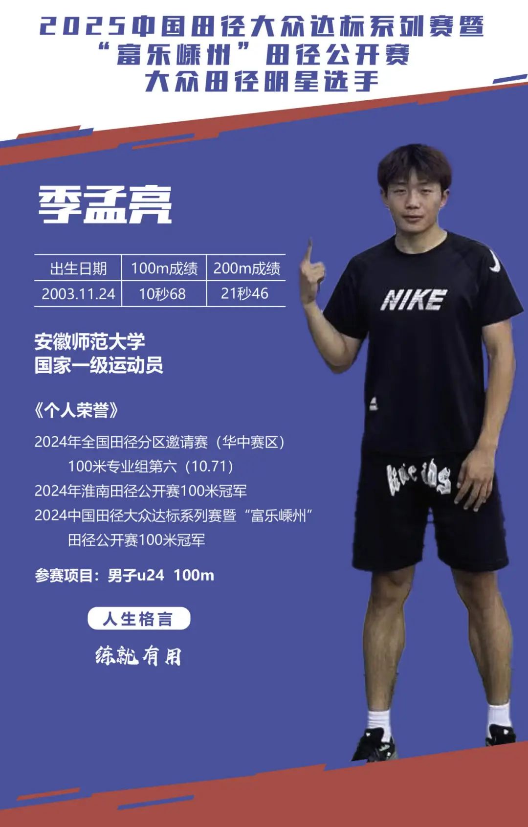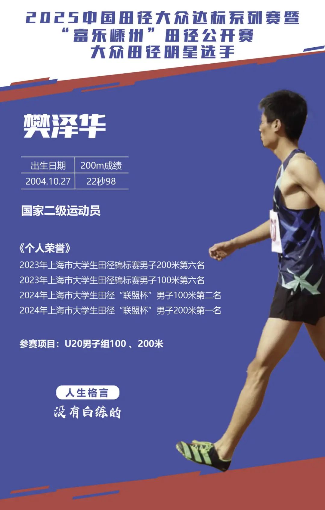 經(jīng)過(guò)組委會(huì)嚴(yán)格評(píng)選,2025中國(guó)田徑大眾達(dá)標(biāo)系列賽暨“富樂(lè)嵊州”田徑公開(kāi)賽大眾明星選手名單正式公布!