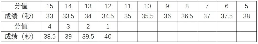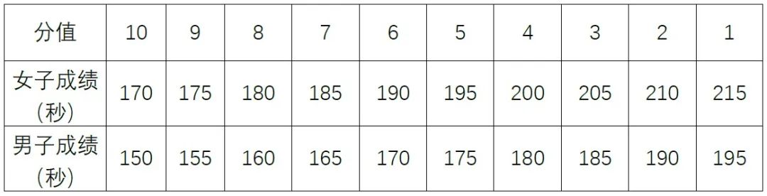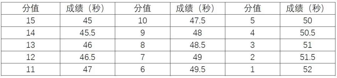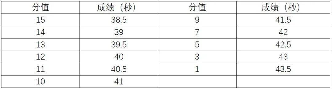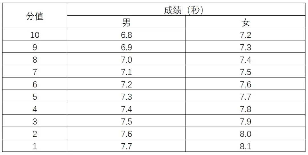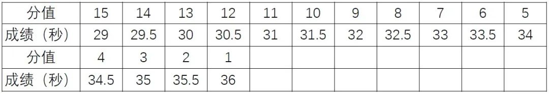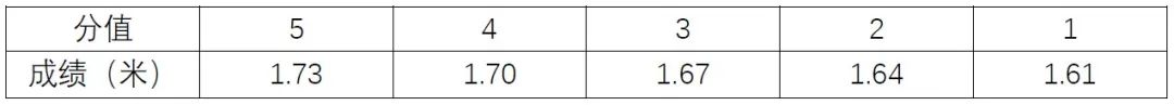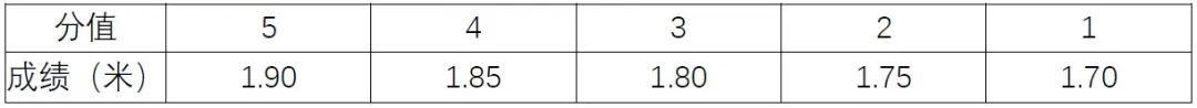 (二)女子測(cè)試項(xiàng)目評(píng)分表: