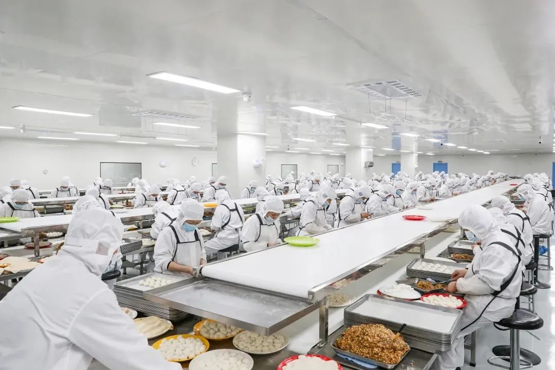 每條流水線兩側,穿戴白衣白帽白口罩的工人們,捻皮、填餡、捏褶,五六秒鐘便完成一個標準的“鯉魚嘴”?!搬又菪』\包工藝獨特,用的是老面發(fā)酵,面皮太軟,無法用機器替代人工,主要以傳統(tǒng)方式手工包餡?!倍麻L劉少君解釋。