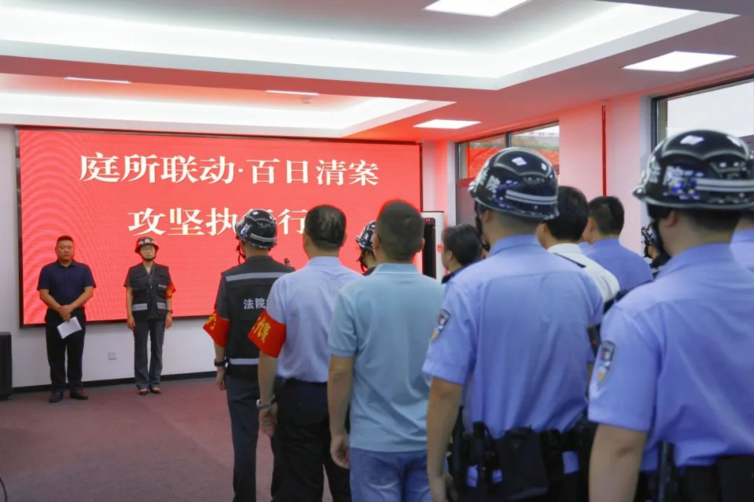 5月23日早晨7時(shí),嵊州法院正式啟動為期3天的“庭所聯(lián)動”執(zhí)行攻堅(jiān)行動,這是“百日清案攻堅(jiān)”專項(xiàng)行動中的雷霆一環(huán)。出征儀式上,院黨組書記、院長方艷,浦口街道黨工委書記江凱出席并作部署講話。浦口街道政法副書記,派出所所長、司法所所長及干警代表,村社干部共同參與本次活動,部分人大代表、政協(xié)委員、檢察院干部全程見證、監(jiān)督執(zhí)行。