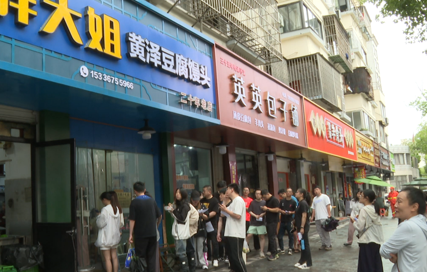 剛過(guò)上午十點(diǎn),未到飯點(diǎn),越秀路上的胖大姐黃澤豆腐饅頭鋪前已排起蜿蜒長(zhǎng)隊(duì)。來(lái)自嘉興的宋女士和劉女士拖著行李箱加入等候大軍:“昨天的音樂(lè)節(jié)玩嗨了,今天特意在返程前趕來(lái),就為這口正宗嵊州味?!彼齻儗?duì)鮮嫩的豆腐包贊不絕口,“排半小時(shí)也值!”