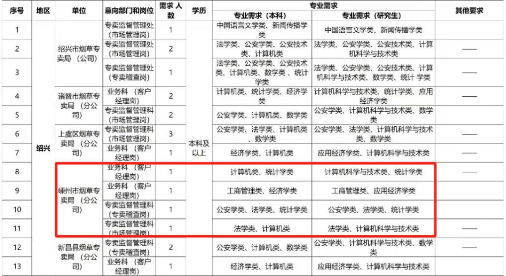 本次共計招聘153人,具體招聘單位、崗位及相關(guān)要求,詳見《浙江省煙草專賣局(公司)2025年業(yè)務(wù)類崗位招聘計劃表》附件1。
