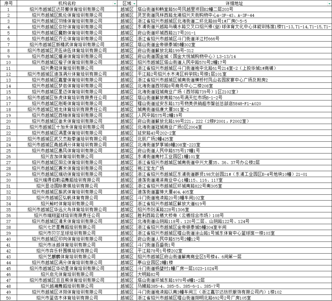 關(guān)于公布紹興市體育類校外培訓(xùn)機(jī)構(gòu)入駐全國平臺(tái)情況的公告