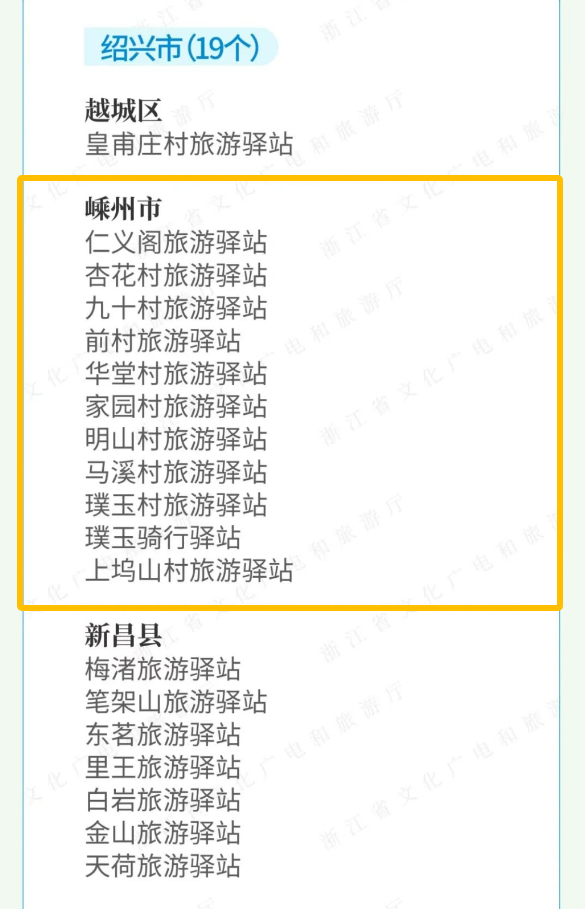 近日,省文化廣電和旅游廳認(rèn)定第四批浙江省旅游驛站216個(gè),其中一級(jí)旅游驛站41個(gè),二級(jí)旅游驛站66個(gè),三級(jí)旅游驛站109個(gè)。其中嵊州11個(gè)旅游驛站入選。