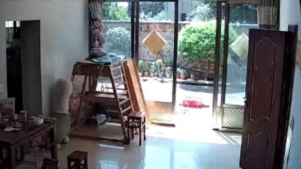 通過調(diào)取姚大媽家中的監(jiān)控發(fā)現(xiàn),在10時(shí)31分左右,一個(gè)頭戴帽子、口罩的人出現(xiàn)在圍墻上,他經(jīng)過一番觀察后輕松地翻越圍墻進(jìn)入屋內(nèi),在確認(rèn)屋子里面沒人后直奔一樓房間。6分鐘后該男子離開,和姚大媽迎面撞上,奪路而逃。