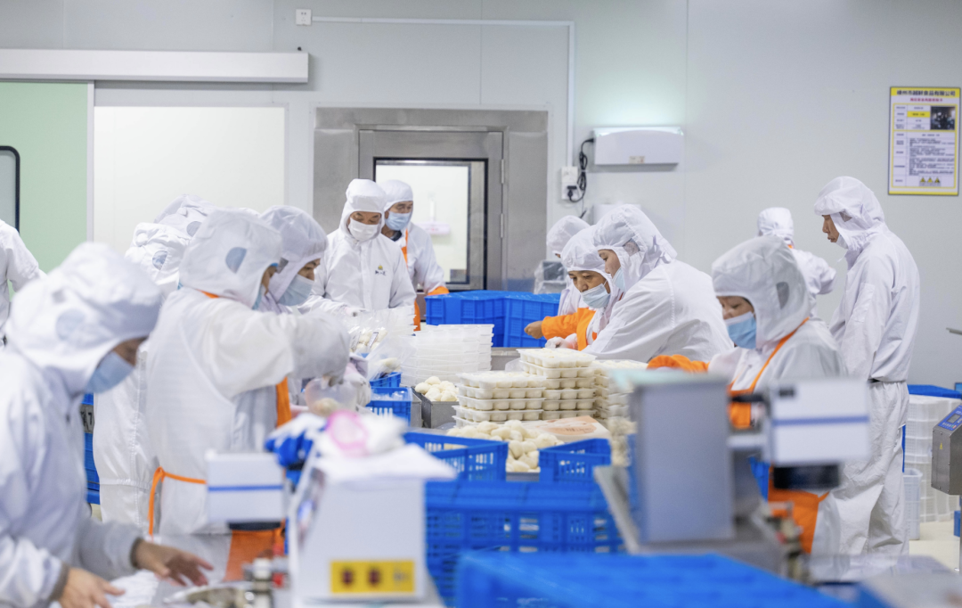 記者看到,在該公司的小籠包生產(chǎn)線上,一籠籠小籠包在經(jīng)過和面、搟皮、包餡等數(shù)道工序后,冷藏、包裝、“坐”上冷運(yùn)車,“飛”往全國各地?!斑@個(gè)車間每天能生產(chǎn)50萬個(gè)小籠包,還有一個(gè)車間正在建設(shè)中,到時(shí)候一天能生產(chǎn)100余萬個(gè)小籠包?!睆堜摻榻B。