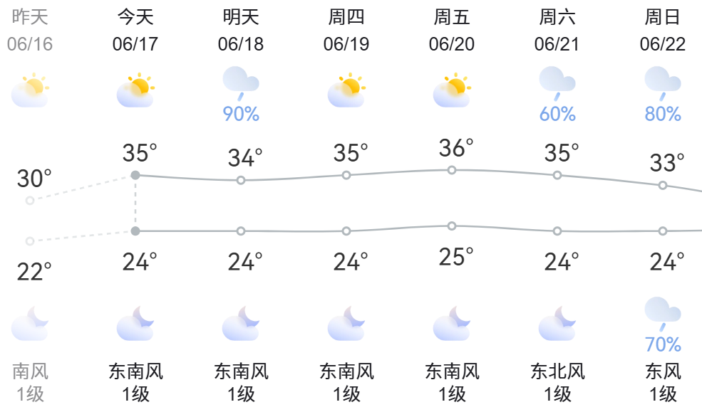 本周晴熱天氣將迅速成為主旋律,其間最高氣溫預計維持在34℃-36℃,“熱”力十足。更猛的是,這種晴熱模式下,午后局地仍可能冒出雷陣雨來擾。