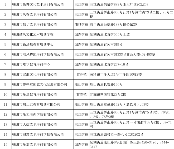 近日,嵊州市教育體育局發(fā)布了嵊州市非學(xué)科類校外培訓(xùn)機構(gòu)“白名單”,一起來看看吧!