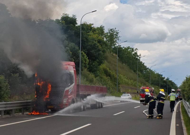 發(fā)現(xiàn)路邊的貨車濃煙四起