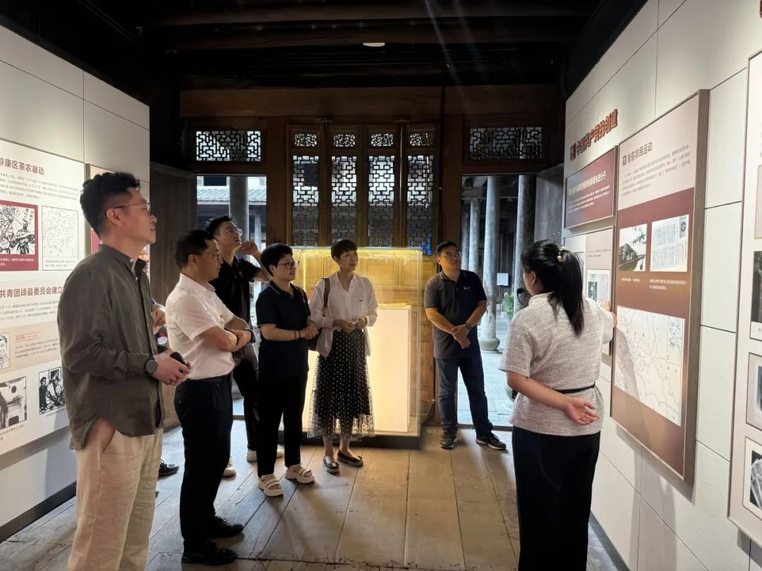 踏入革命老區(qū)長樂鎮(zhèn)沃基村,青石板路引著隊伍走向中共浙江省工委舊址。斑駁的墻面、泛黃的史料、珍貴的老照片,無聲地訴說著那段艱苦卓絕的革命歲月。大家認真聆聽講解,循著歷史的脈絡(luò),重溫了老一輩共產(chǎn)黨人在浙東大地開展革命工作的崢嶸歷程。當(dāng)機關(guān)黨委書記趙晨暉舉起右拳,誓言便與七十余年前的吶喊產(chǎn)生了共振。黨旗鮮紅如永不褪色的火焰,映照著一張張凝重而堅定的面龐。