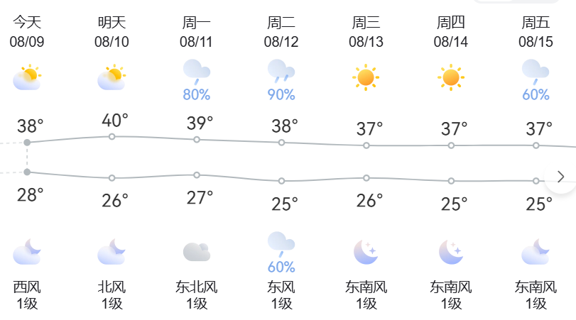 總體來看近期高溫仍是天氣舞臺的主旋律,直到下周后期才會有所緩解,請大家繼續(xù)做好防暑降溫工作。