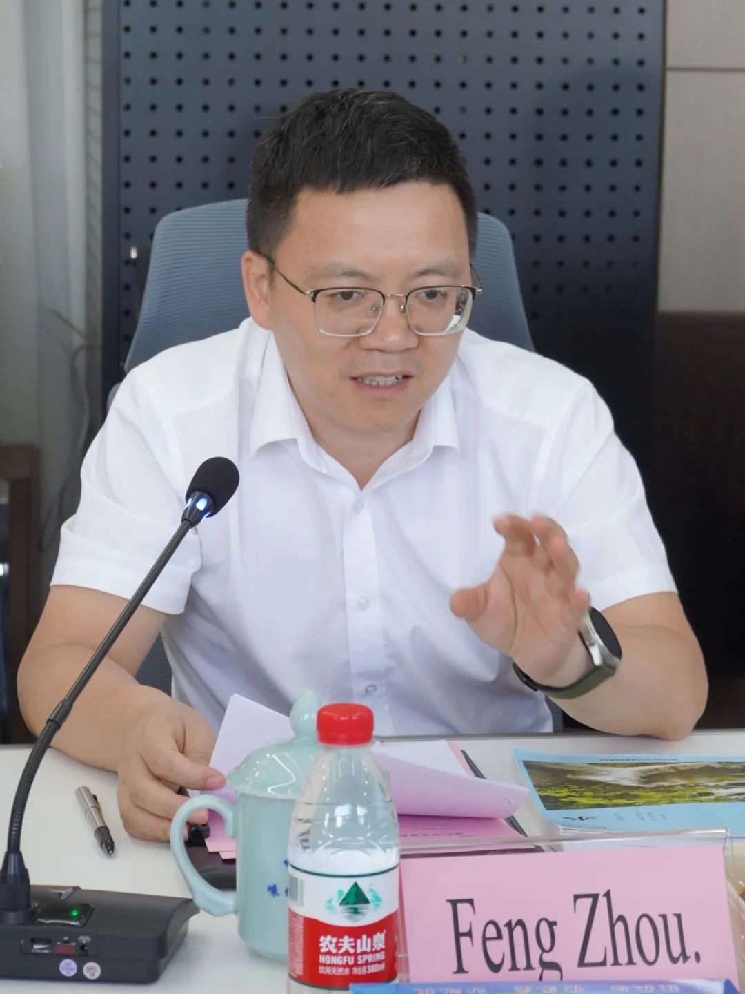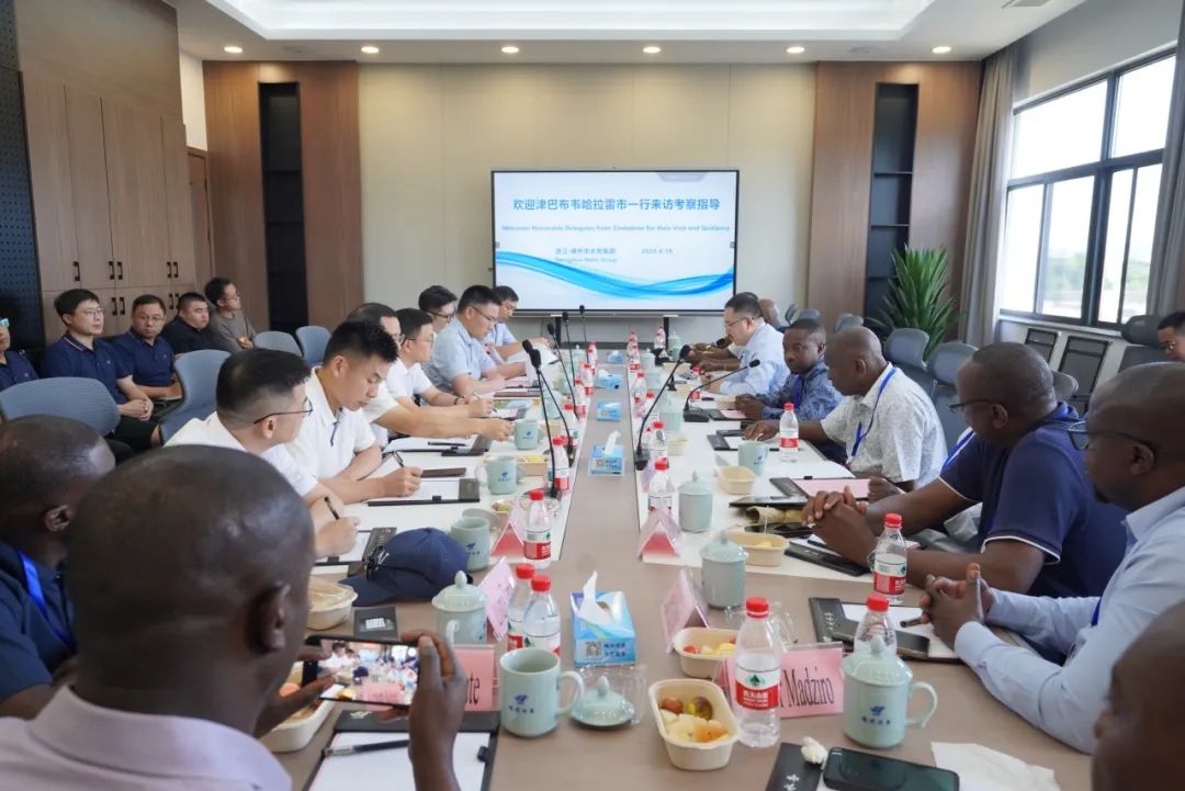 調(diào)研結(jié)束后,雙方在智慧控制中心三樓會(huì)議室召開座談會(huì),會(huì)議由嵊州市水務(wù)集團(tuán)黨委書記、董事長(zhǎng)周鋒主持,哈拉雷市代表團(tuán)成員、水務(wù)集團(tuán)及中控信息、萊宸科技相關(guān)領(lǐng)導(dǎo)共同參加。