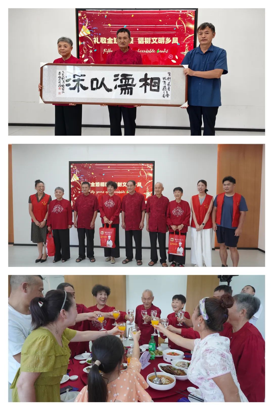 8月16日,長樂鎮(zhèn)水竹村為三對攜手走過半個世紀(jì)的金婚伉儷舉辦了一場簡約溫馨的金婚慶典?;顒蝇F(xiàn)場,文化特派員獻(xiàn)唱越劇,以戲文演繹真情,用鄉(xiāng)音傳唱文明。子女和村干部現(xiàn)場送祝福,外出無法趕回的子女、后代用心特別拍攝了祝福視頻。嵊州市書法家協(xié)會將飽含祝福的書法繪畫作品贈予三對夫婦,翰墨飄香中銘刻歲月情深。中國好人沈紅平向金婚夫婦贈送了象征團(tuán)圓美滿、熱氣騰騰的嵊州特色小籠包伴手禮,傳遞了來自身邊好人的敬意與祝福。更令人驚喜的是,“鄉(xiāng)風(fēng)掌勺人”團(tuán)隊(duì)特別定制并呈上象征甜蜜與圓滿的金婚主題蛋糕。當(dāng)老人們攜手切下蛋糕,分享跨越五十載的風(fēng)雨同舟故事,現(xiàn)場彌漫著感動與溫馨。這場金婚宴席,不僅是對堅(jiān)貞愛情的禮贊,更是以潤物無聲的方式向村民傳遞了溫馨和睦的家風(fēng)家教和“儀式從簡”的現(xiàn)代文明理念。
