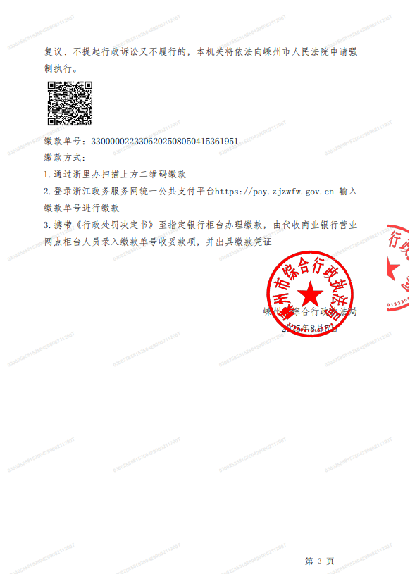 附件:《行政處罰決定書》(嵊綜執(zhí)罰決字〔2025〕第000485號).pdf