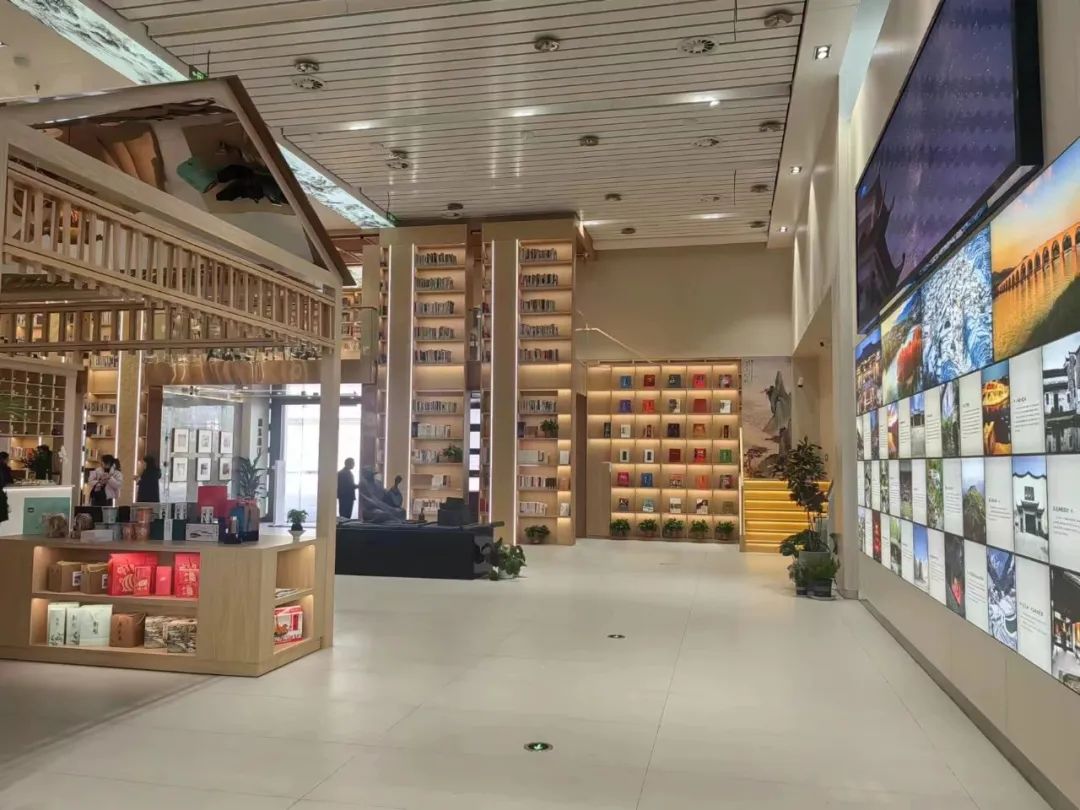 嵊州市旅游集散中心位于高鐵新城,緊鄰嵊新航站樓。中心內(nèi)設(shè)置了越劇題材非遺作品展示區(qū)、嵊州特產(chǎn)展示區(qū)等多重區(qū)域,更有與集散中心功能相結(jié)合的【剡溪書房】,以“嵊州航站樓書房”為載體,用運(yùn)長(zhǎng)三角書房圖書通借通還的優(yōu)勢(shì),可供游客休閑、休憩。