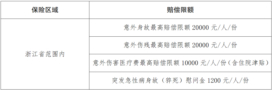 保險(xiǎn)合同期限為壹年,自2025年8月1日零時(shí)起至2026年7月31日二十四時(shí)止。此外,本市戶籍或常住嵊州的年滿60周歲的老年人也可通過自費(fèi)方式購買,享受同等保障待遇。