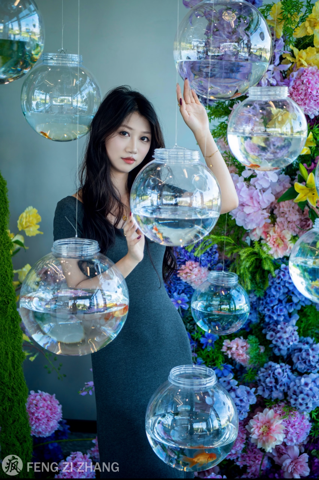 “沃野茶咖”的茶吧兩側(cè),花卉早已不是點(diǎn)綴——它們成了另一條流動(dòng)的河流,與咖啡的醇香并行流淌。一整面墻的落地玻璃,將山野的呼吸接進(jìn)室內(nèi)連同沃基文化樂園的生動(dòng)剪影。一個(gè)個(gè)吊掛的透明球里養(yǎng)著一只金魚,在地面上投下粼粼光斑,仿佛整間咖啡館都沉在靜謐的湖底。