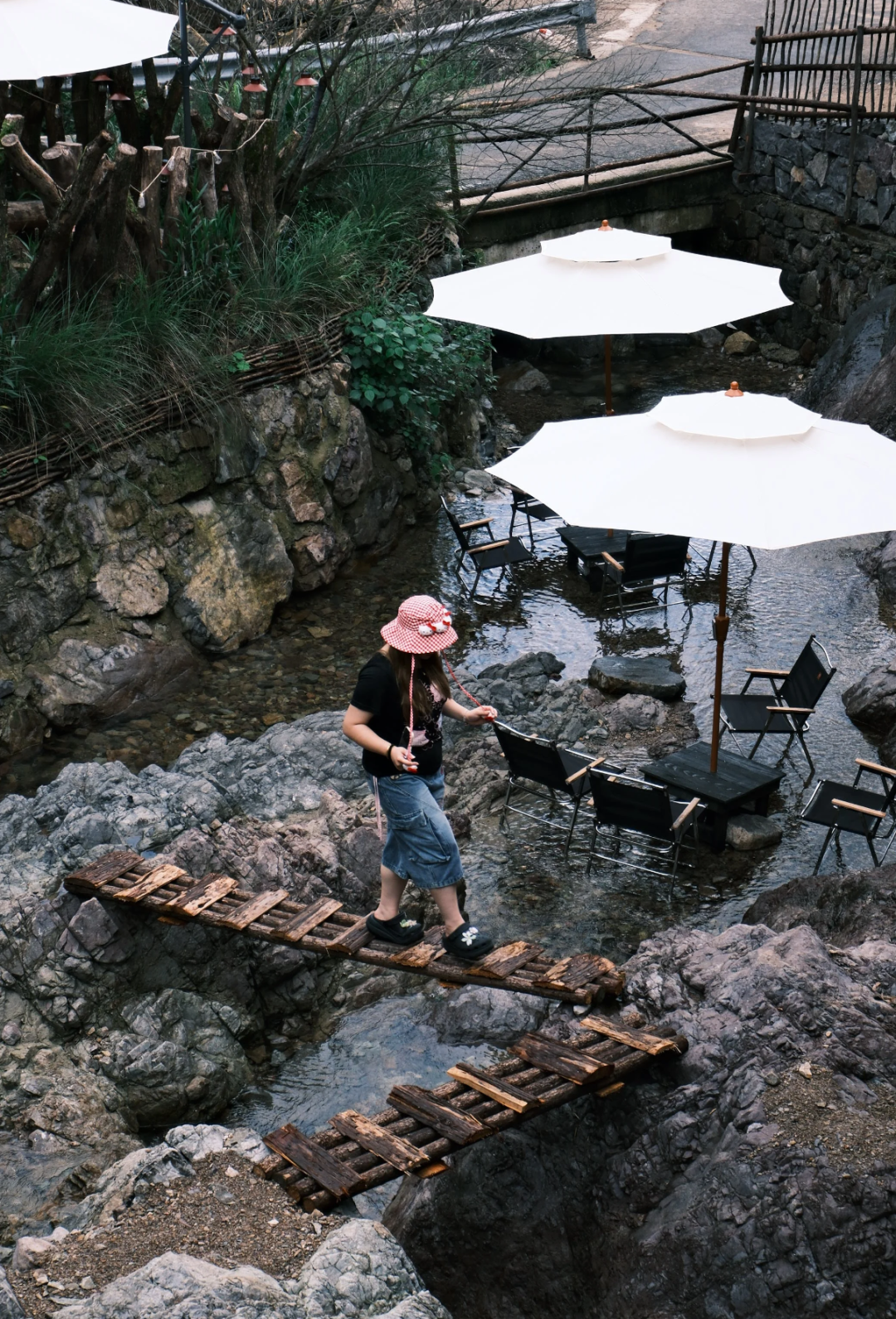 28 COFFEE森林公園藏在八月嶺的褶皺里,像被山風(fēng)遺忘的私語??鐜r小橋橫臥,飛瀉瀑布濺珠,在此溪邊品茗,仿佛踏入了天然氧吧。咖啡香或許是這里的意外之筆,混著松針與濕潤的泥土氣,在林間漫不經(jīng)心地游。陽光穿過葉隙,在杯沿繡出細(xì)碎的金紋,喝一口,竟嘗得出瀑布的清冽與山林的醇厚。