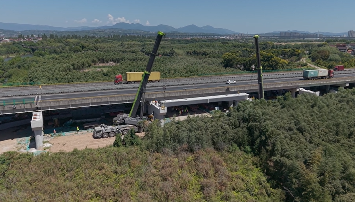針對復(fù)雜施工條件,項目團隊堅持精細化、標準化作業(yè),多次對施工方案進行優(yōu)化,嚴格落實技術(shù)交底及各項防護措施,形成架橋機安裝、吊機安裝兩套成熟的梁板安裝工藝流程。通過嚴格遵循工藝流程、強化過程管控,有效保障了首片梁架設(shè)的精準與安全。甬金改擴建紹興段3標項目部黨支部書記孫九龍表示,作為甬金改擴建紹興段的重要節(jié)點,本次架設(shè)不僅為后續(xù)的大規(guī)模梁板安裝奠定了堅實的基礎(chǔ),同時也為全線梁板施工積累了重要的技術(shù)和管理的寶貴經(jīng)驗。