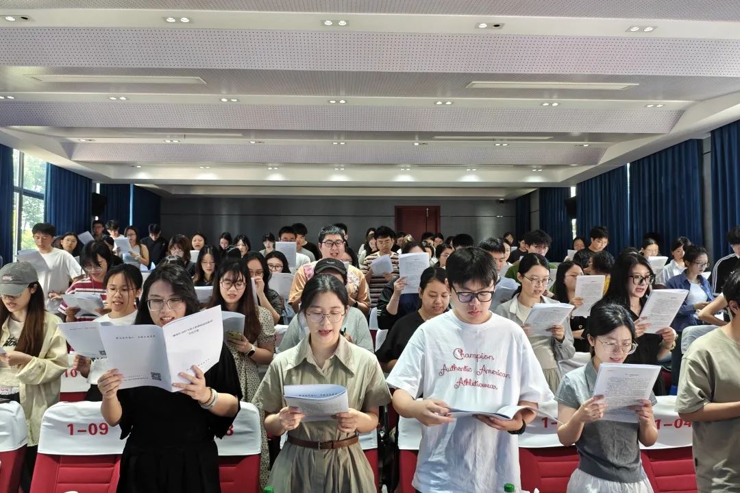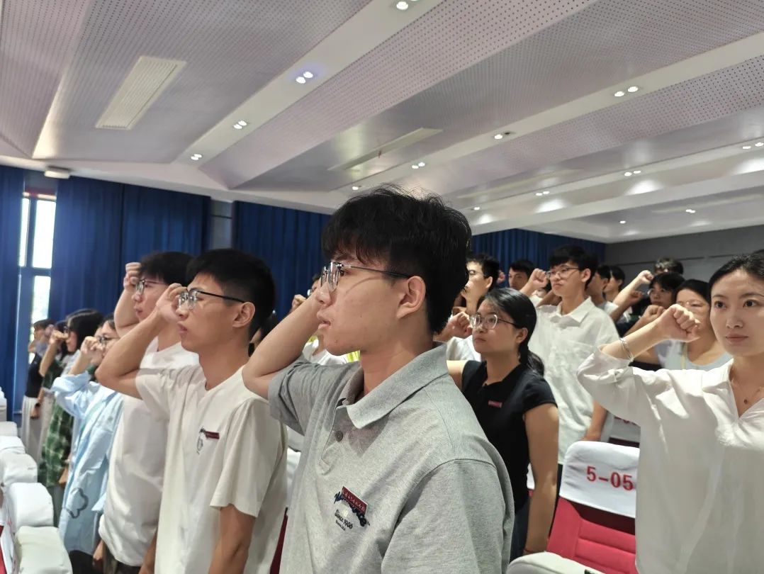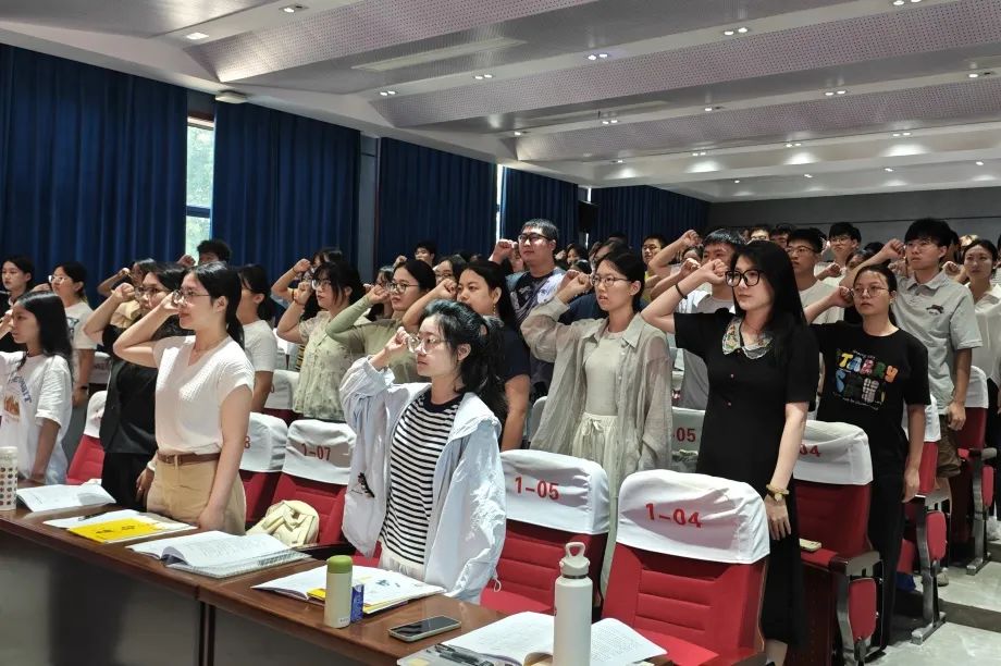 隨后,全體新教師進行了莊嚴的入職宣誓。鏗鏘有力的誓言,彰顯了新教師們對黨的教育事業(yè)的忠誠,表達了他們?yōu)辄h育人、為國育才的堅定信念,以及為培養(yǎng)擔(dān)當民族復(fù)興大任的時代新人而不懈奮斗的崇高理想。