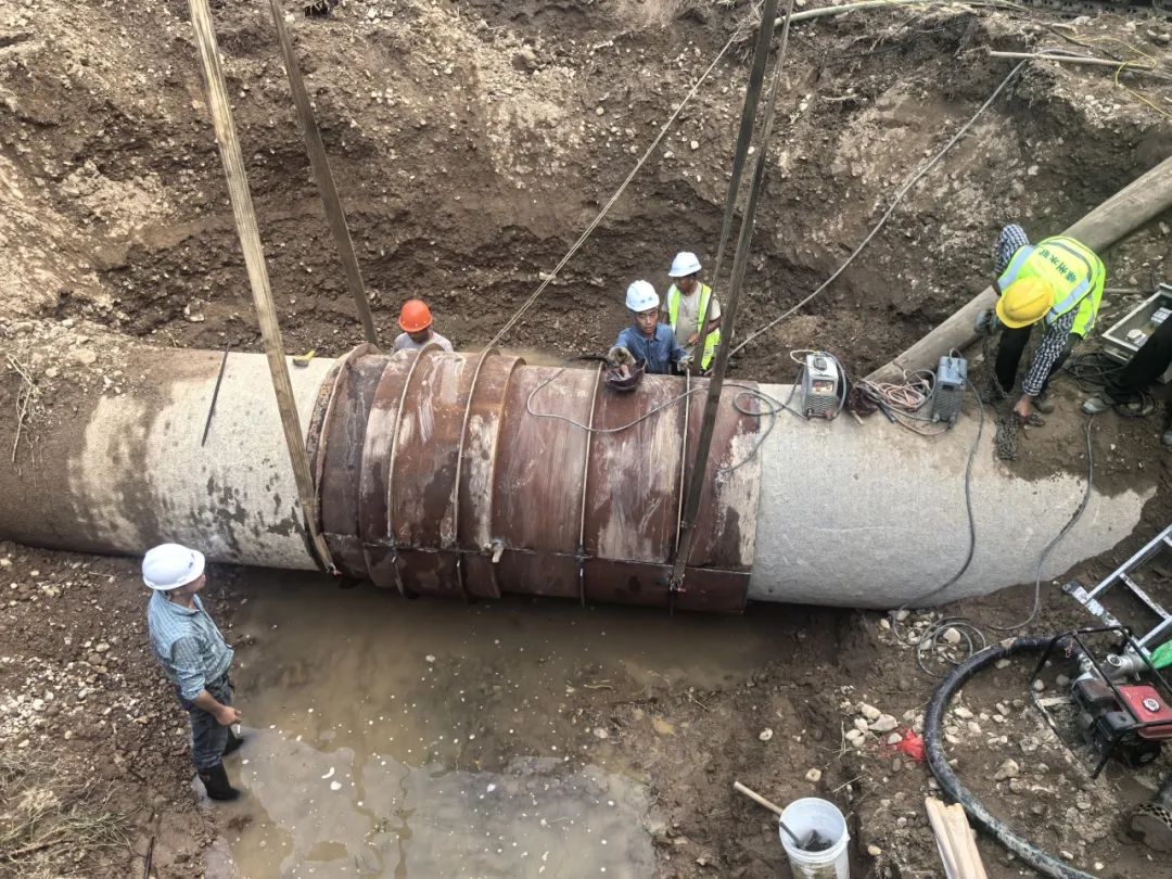 時(shí)間緊迫,搶修工作容不得半點(diǎn)耽擱。搶修人員立即清理、焊接鋼制抱箍,經(jīng)過(guò)24小時(shí)的緊密協(xié)作,管網(wǎng)終于按照預(yù)案流程完成修復(fù)。
