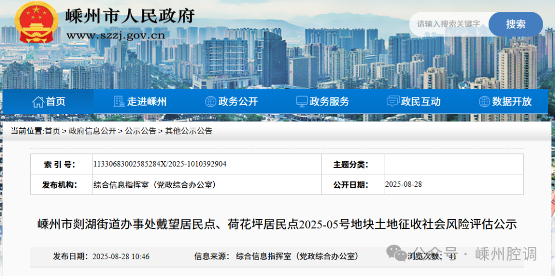 嵊州市剡湖街道辦事處戴望居民點(diǎn)、荷花坪居民點(diǎn)2025-05號(hào)地塊土地征收社會(huì)風(fēng)險(xiǎn)評(píng)估公示