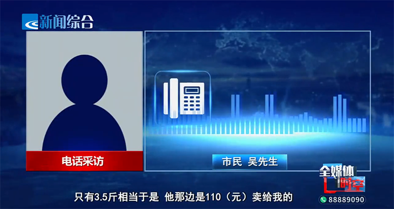 市民 吳先生:只有3.5斤相當(dāng)于是,他那邊是110(元)賣給我的,25塊錢(1斤)賣給我的,相當(dāng)于4斤半左右了,多收了我1斤的錢。