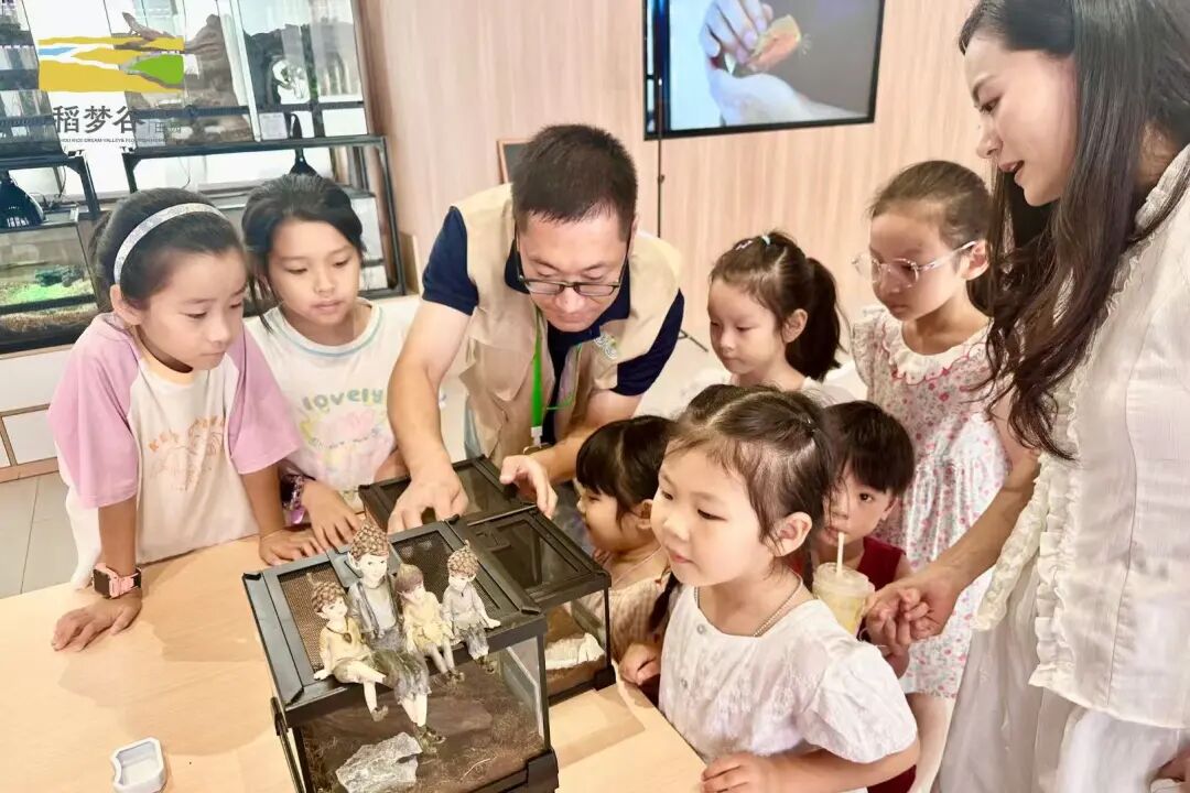 稻夢谷還深度融合嵊州“耕讀傳家”的文脈基因、“南孔圣地”的儒雅底蘊和“越劇之鄉(xiāng)”的婉轉(zhuǎn)風情,在稻田間鋪展沉浸式體驗長卷。在數(shù)字農(nóng)業(yè)控制中心,游客可觸摸未來農(nóng)業(yè)的脈搏;在種子妙妙屋,孩子們可以觀察胚芽生長;青團揉捏的軟糯、香包縫制的巧思、米粘畫勾勒的童趣,更讓傳統(tǒng)技藝成為連接古今的紐帶;在沃野爬趣,小朋友可以近距離看到蜥蜴、守宮、角蛙,體驗到課堂上難以觸碰到的知識。