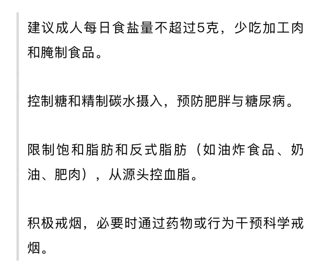 高鹽、高糖、高脂飲食會(huì)持續(xù)損害血管內(nèi)皮,是腦梗年輕化的重要推手?!缎掠⒏裉m醫(yī)學(xué)雜志》此前刊發(fā)研究稱(chēng),每日少吃3克鹽,腦梗風(fēng)險(xiǎn)可降低20%。另有研究顯示,吸煙者發(fā)生卒中的風(fēng)險(xiǎn)是不吸煙者的2~3.5倍。