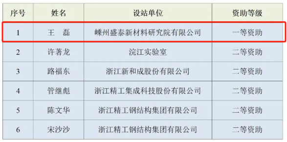 紹興市共有6位博士后獲得項目資助,其中一等資助1項、二等資助5項。