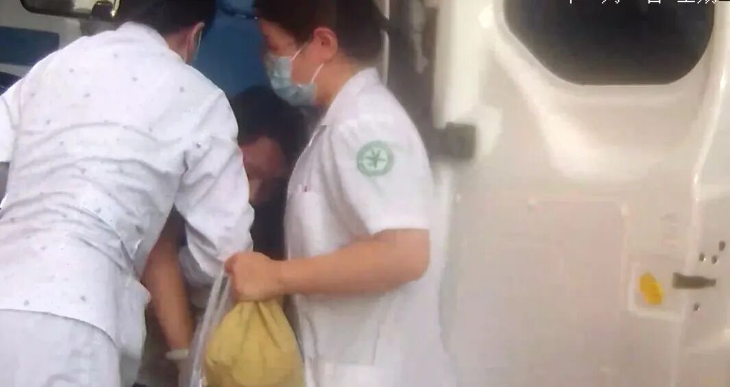 小心地將陳女士轉(zhuǎn)移至救護(hù)車