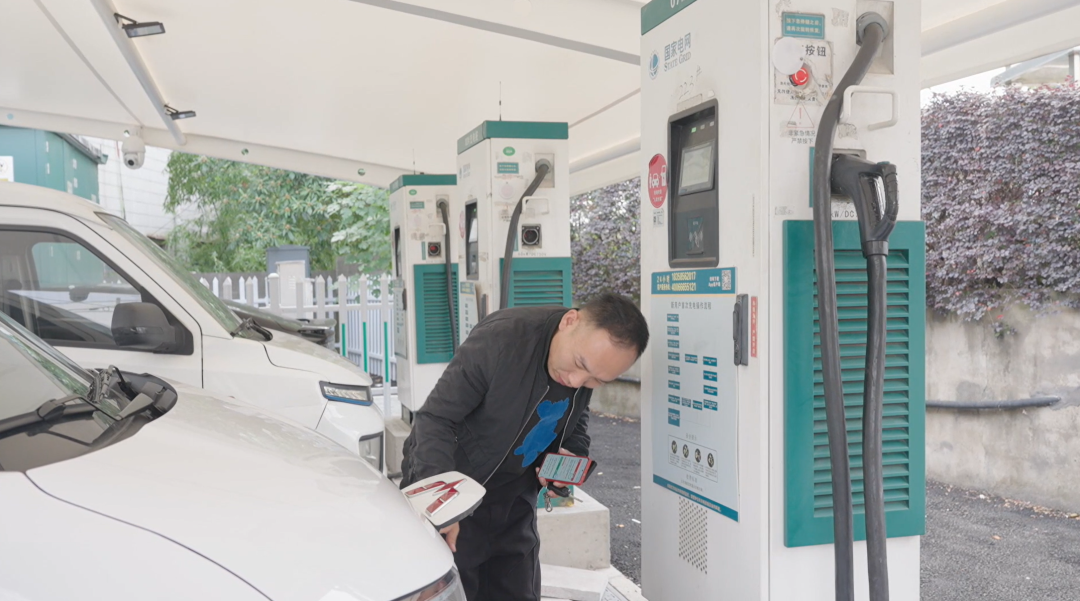 “周邊廠區(qū)、物流園人員較多,充電需求也高,我們在這里設(shè)計安裝了4個功率為60千瓦的快充充電樁,每天可為90多輛電動汽車充電。我們會定期巡視檢查,確保設(shè)備正常運行。充電價格是按時段上下浮動的,一般中午11點到下午1點這個時間段充電的人較多,因為價格相對優(yōu)惠?!?/span>