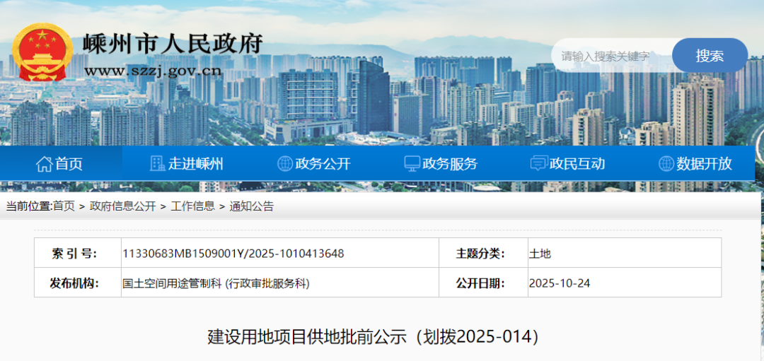 四、公示期滿逾期視為無異議,公示屆滿我局將上述用地上報嵊州市人民政府審批。