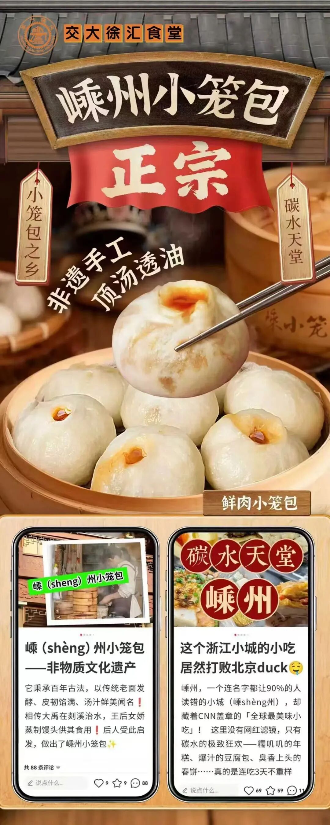 而如今的嵊州小籠包已從街頭小吃發(fā)展為大產(chǎn)業(yè),并經(jīng)由嵊州市政府和嵊知味小吃產(chǎn)業(yè)發(fā)展有限公司的推動(dòng),走向全國(guó)。同樣,也走進(jìn)了交大徐匯校區(qū)的校園。