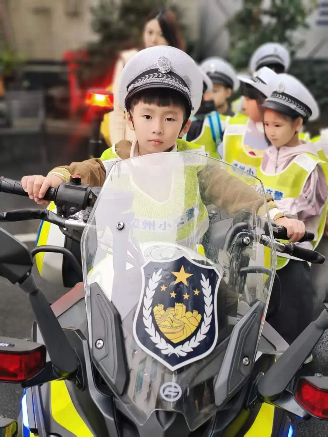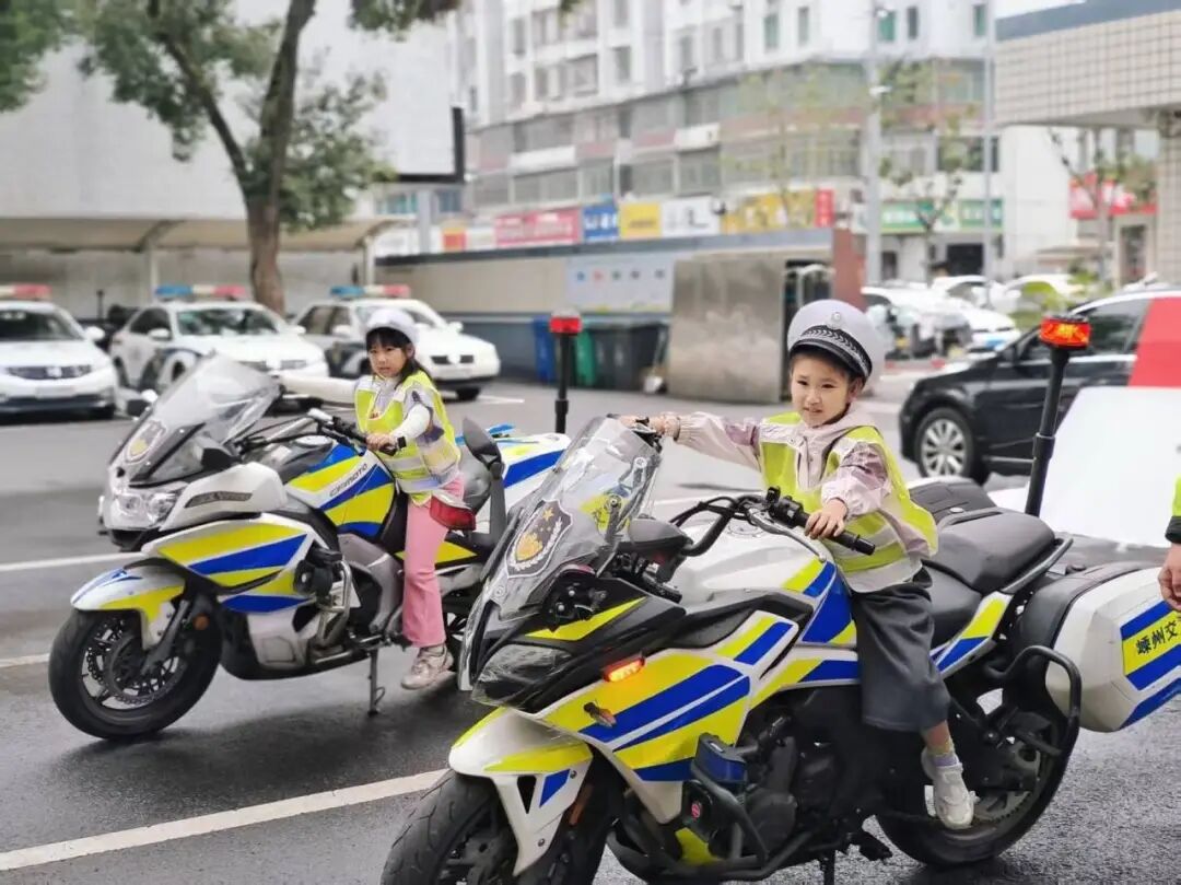 活動(dòng)現(xiàn)場(chǎng),三江中隊(duì)教官們首先為孩子們系統(tǒng)講解了交通管理的重要意義。隨后,在交警叔叔的帶領(lǐng)下,孩子們穿上定制反光執(zhí)勤服,化身為“小交警”,學(xué)習(xí)交通手勢(shì)操、體驗(yàn)汽車盲區(qū),并試乘警用摩托車、參觀智慧警務(wù)系統(tǒng),近距離感受科技賦能的現(xiàn)代警務(wù)工作。