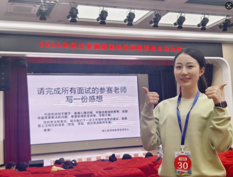 11月7日至9日,2025年浙江省隨班就讀資源教師基本功大賽在麗水市舉辦。本次大賽以“用愛心和專業(yè)點(diǎn)亮特殊孩子的美好童年”為主題。通過層層選拔,省賽匯聚了各區(qū)縣市百余名教師參賽。大賽設(shè)置了理論測試、器材操作、小故事講述、案例分析、專家提問五大板塊,內(nèi)容豐富且精彩紛呈。