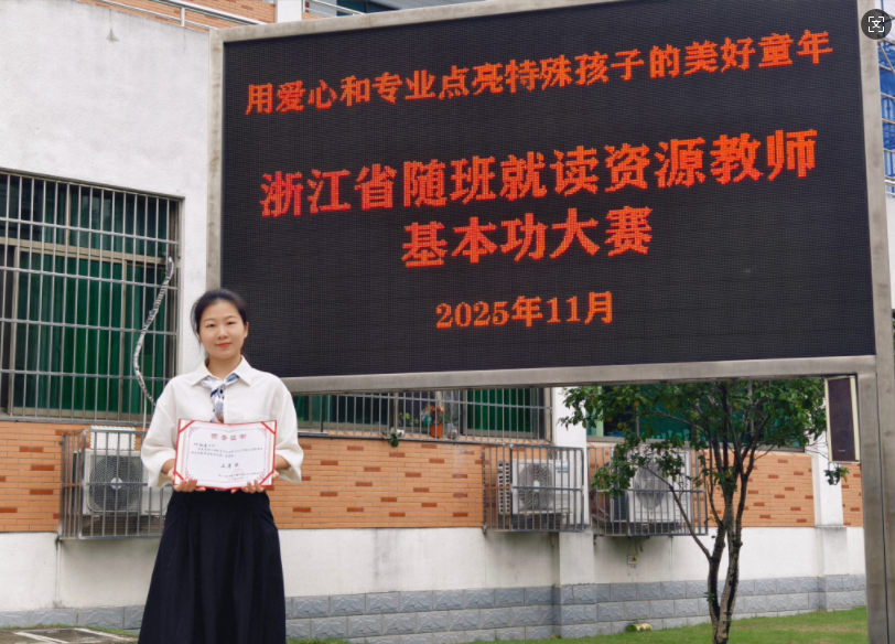 專業(yè)發(fā)展方面,她積極參與培訓(xùn)與賽事,以研促學(xué)、以賽促教。德育案例獲紹興市三等獎(jiǎng),教育論文多次獲嵊州市一、二、三等獎(jiǎng);個(gè)人榮獲嵊州市“13510”青年教師培養(yǎng)工程“勁銳之星”、嵊州市優(yōu)秀班主任、嵊州市優(yōu)秀青年教師等稱號(hào)。她以扎實(shí)學(xué)識(shí)為根基、以創(chuàng)新思路為引擎,在2025年浙江省隨班就讀資源教師基本功大賽中脫穎而出,榮獲省級(jí)一等獎(jiǎng),盡顯青年教師專業(yè)成長活力。