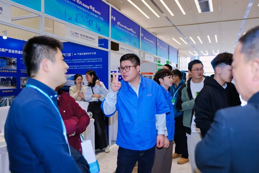 會議由省農(nóng)村供水協(xié)會和省膜產(chǎn)業(yè)協(xié)會聯(lián)合主辦,聚焦農(nóng)村供水高質(zhì)量發(fā)展主題,進(jìn)一步交流市場需求和行業(yè)痛點。來自中國水利水電科學(xué)研究院、同濟(jì)大學(xué)、上海理工大學(xué)等專家學(xué)者帶來權(quán)威的標(biāo)準(zhǔn)解讀和前沿的研究成果,20余家供水企業(yè)和科技企業(yè)攜帶最新研發(fā)的膜處理設(shè)備、智能管理系統(tǒng)、無電加藥消毒系統(tǒng)、智能漏損監(jiān)測系統(tǒng)、防雷系統(tǒng)等現(xiàn)代化解決方案現(xiàn)場“打擂”,推動更多技術(shù)成果從“實驗室”走向“供水站”,形成多方共商共管共治合力。