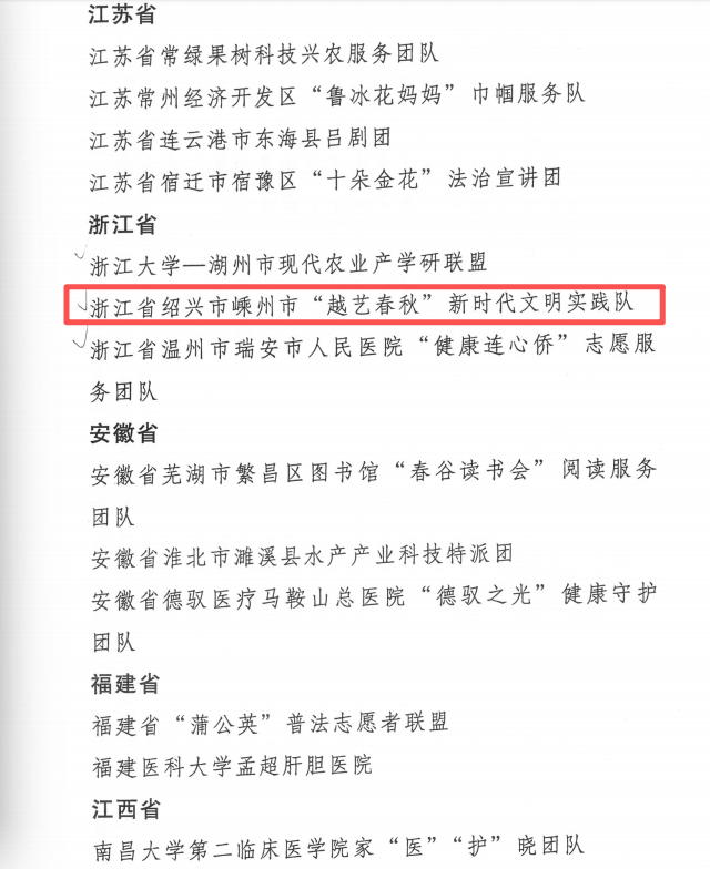 近日,嵊州市“越藝春秋”新時代文明實踐隊?wèi){借其在文化惠民、藝術(shù)普及與鄉(xiāng)村文化振興方面的卓越貢獻(xiàn),成功入選2024年度全國文化科技衛(wèi)生“三下鄉(xiāng)”活動優(yōu)秀團(tuán)隊,成為浙江省獲此殊榮的三個團(tuán)隊之一。這一榮譽(yù)不僅是對團(tuán)隊工作的肯定,更是對嵊州越劇文化傳承與創(chuàng)新實踐的高度認(rèn)可。