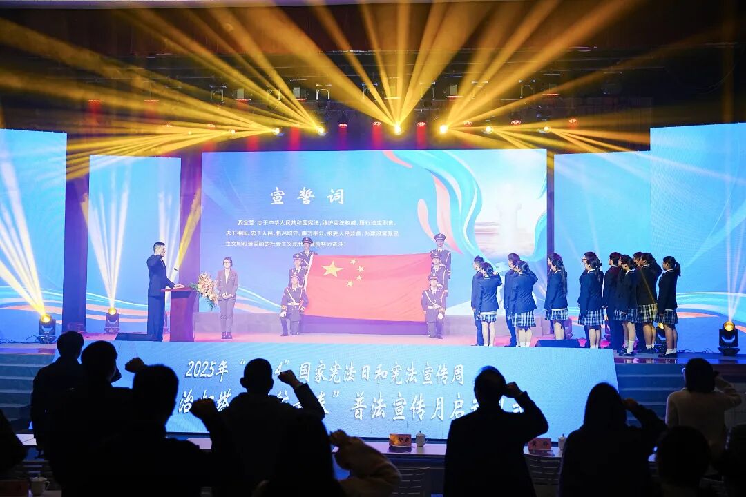 12月2日上午,嵊州市2025年“12·4”國家憲法日和憲法宣傳周暨“法治燈塔·護航青春”普法宣傳月啟動儀式活動在市中等職業(yè)技術(shù)學校舉行。市委副書記、社會工作部部長、政法委書記柴軍,市委宣傳部副部長吳一贊,教體局黨委書記、局長裘校,司法局黨組書記、局長呂爐君,守法普法協(xié)調(diào)小組成員單位及其他部門分管負責人,全校師生等2000余人參加。