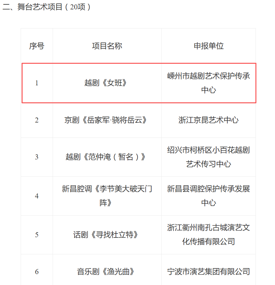 近日,國(guó)家藝術(shù)基金管理中心正式公示國(guó)家藝術(shù)基金(一般項(xiàng)目)2026年度資助項(xiàng)目名單,由嵊州市越劇藝術(shù)保護(hù)傳承中心創(chuàng)排的原創(chuàng)劇目《女班》成功入選大型舞臺(tái)劇和作品創(chuàng)作項(xiàng)目,斬獲國(guó)家級(jí)立項(xiàng)支持。日前,該劇已入選浙江文化藝術(shù)發(fā)展基金 2025 年度資助項(xiàng)目,如今再添國(guó)家級(jí)資助,實(shí)現(xiàn)國(guó)家、省、市三級(jí)藝術(shù)基金立項(xiàng)資助。