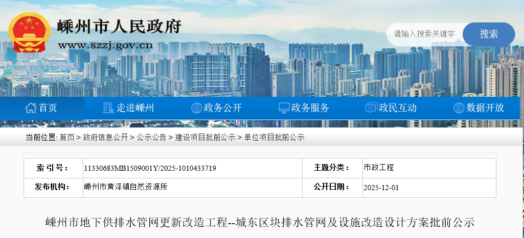 嵊州市地下供排水管網(wǎng)更新改造工程--城東區(qū)塊排水管網(wǎng)及設(shè)施改造工程,該項(xiàng)目位于嵊州市黃澤鎮(zhèn),共兩條線路。