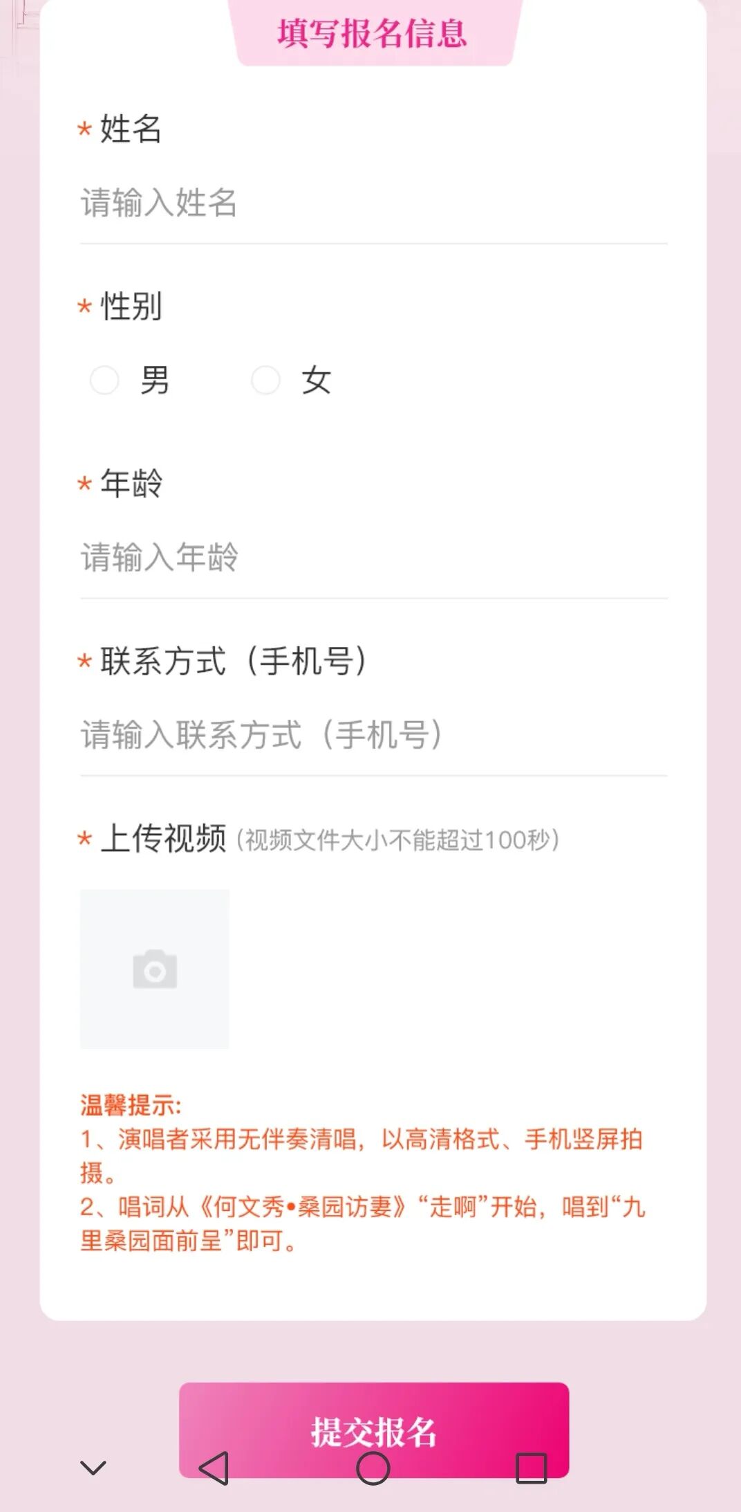 1、演唱者采用無(wú)伴奏清唱,以高清格式、手機(jī)豎屏拍攝。