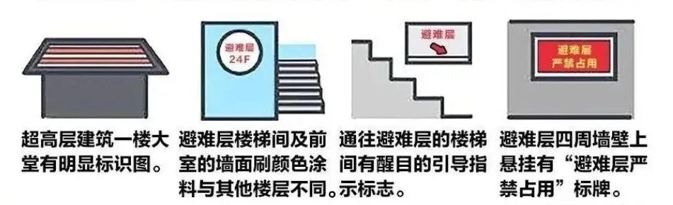 那么逃生時,我們如何快速識別避難層呢?看下圖明了??